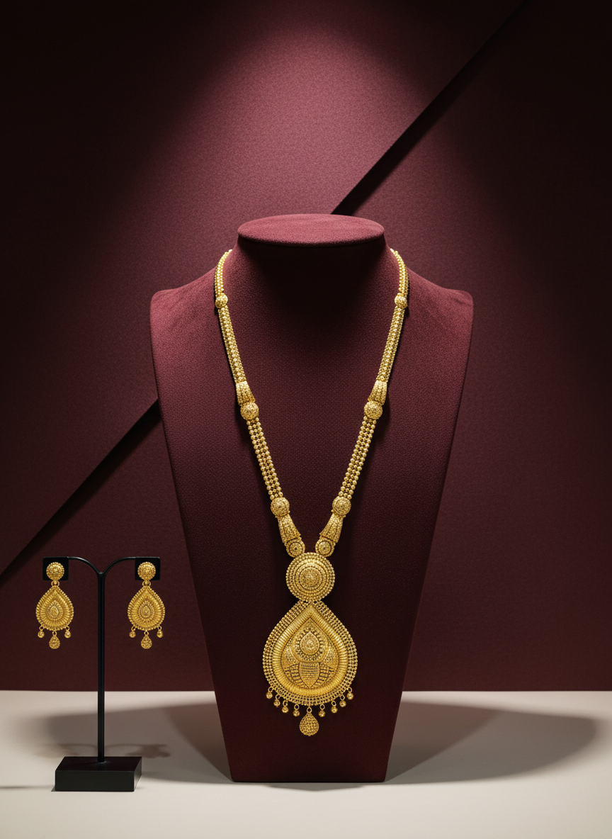Diya Gold Necklace Set brings a touch of luxury to your everyday attire, infusing it with creative elegance. Crafted with gold and diamonds, it's an ideal accessory for any occasion.
