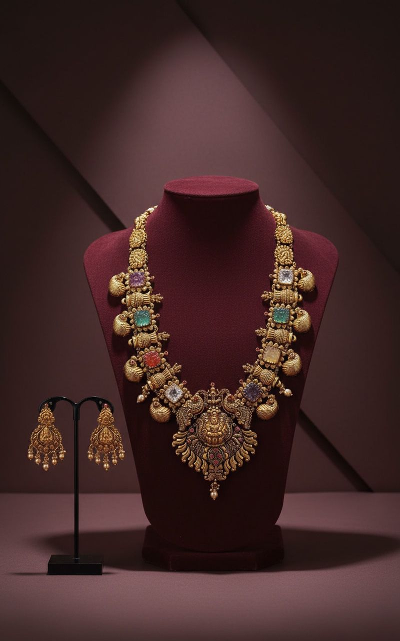 Riya Gemstone Necklace Set brings a touch of luxury to your everyday attire, infusing it with creative elegance. Crafted with gold and diamonds, it's an ideal accessory for any occasion.
