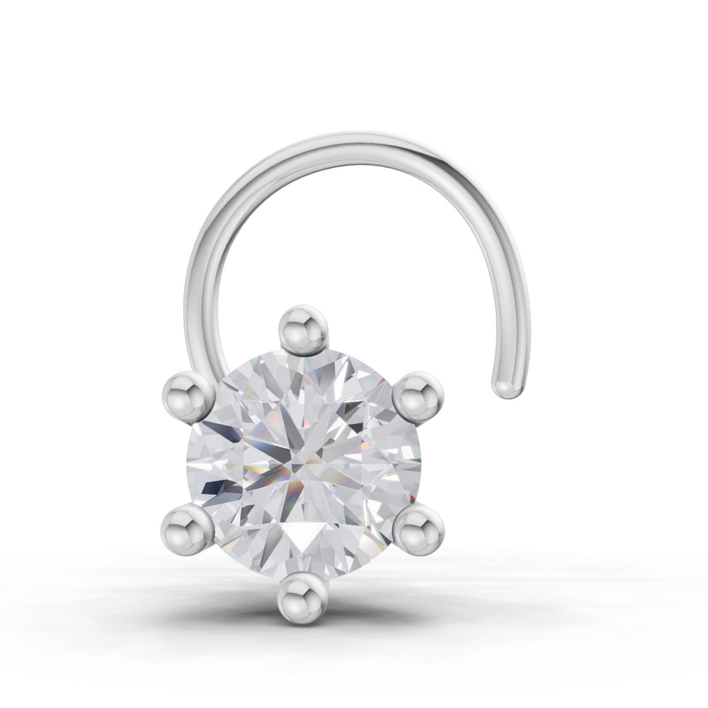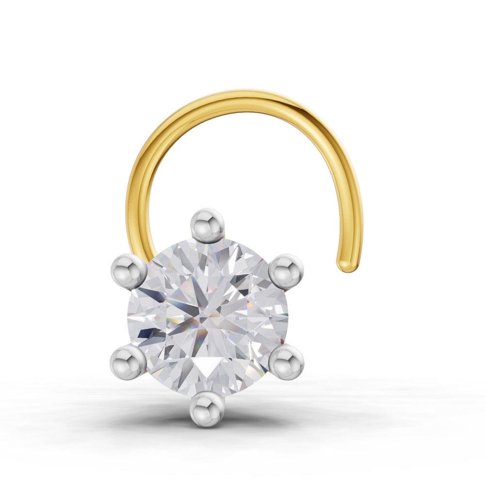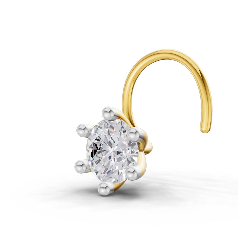 14K Gold 0.15 Ct Diamond Round Shape Solitaire Nose Pin.