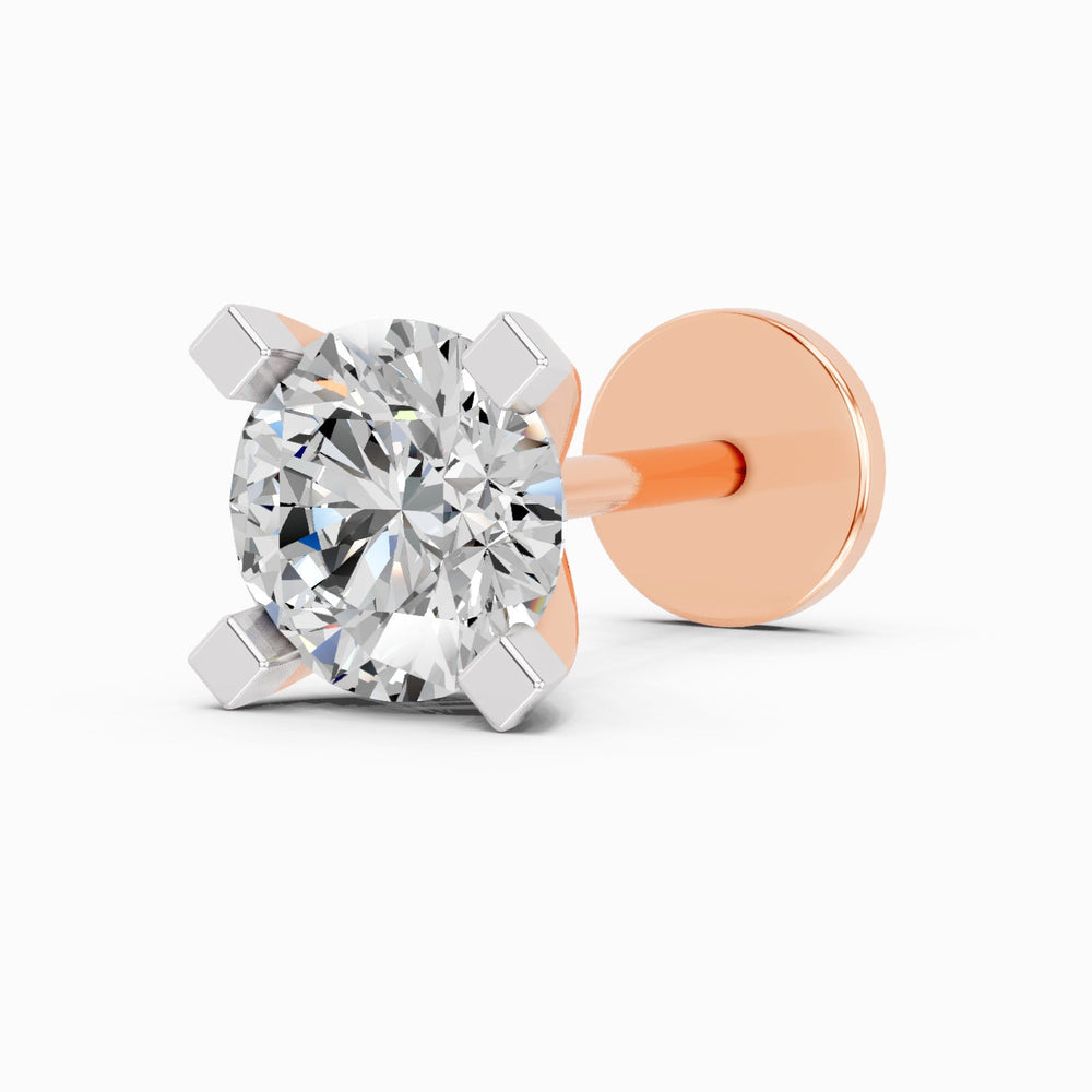 14K Gold-Screw 0.35 Carat Round Shape 4 Prong Solitaire Diamond Nose Pin